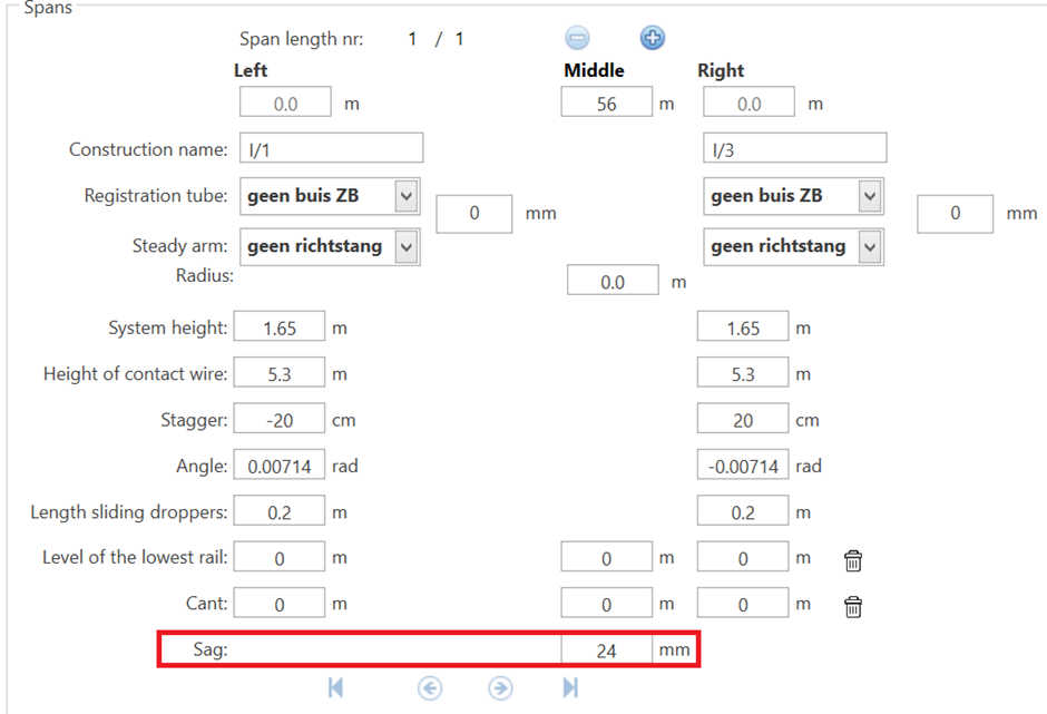 En cochant le bouton "Adjust the sag", une nouvelle ligne apparait sur l'écran d'input par portée, qui permet d'introduire manuellement la flèche souhaitée.