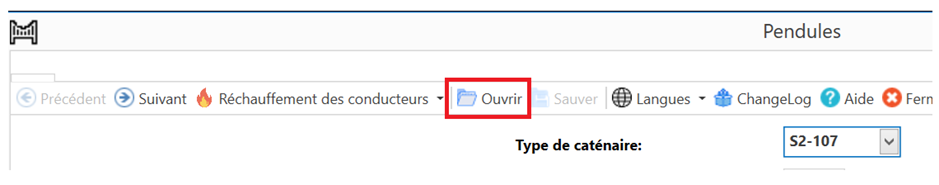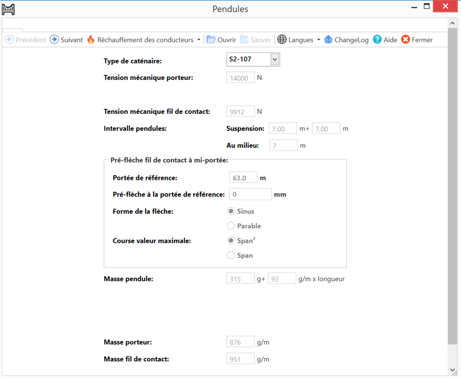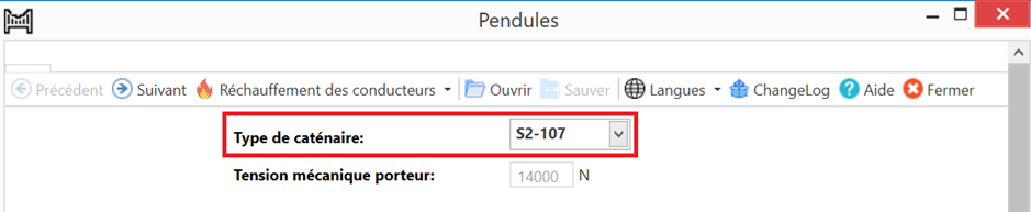Sélectionnez le Type de caténaire. Les valeurs standards sont complétées automatiquement.