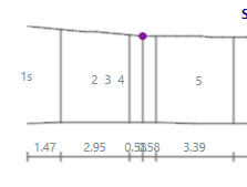 De afstand tussen de binnenste hangers (2 en 3) is de werkelijke afstand rond een compact I (1,14 m). Hangers 2 en 3 zijn in werkelijkheid de pendels (met kleine schroefspanners) die in de richting van het lichaam van de compact I zijn. De afstand tussen de buitenste hangers (1 en 4) is 7 m. Als de compact I dichter bij de paal komt (links in dit geval), wordt hanger 1 op een gegeven moment verwijderd. |