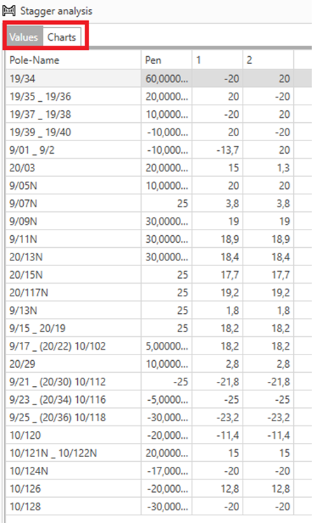 In het bovenstaande voorbeeld geeft de kolom « Pen » de excentriciteit uit het .pen-bestand weer.
