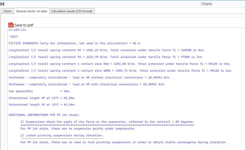 - Veerconstanten en verlenging door trekkracht in de verschillende kabels van de bovenleiding en rijdraad(en) in nieuwe (NEW) en versleten (WORN) toestand