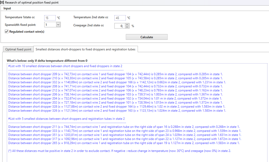 Het berekent het spanningsverlies in de rijdraden afhankelijk van de temperatuur en de spanwijdte van het vaste punt, om zo de ideale spanwijdte voor de positionering van dit punt te bepalen.